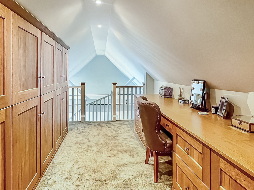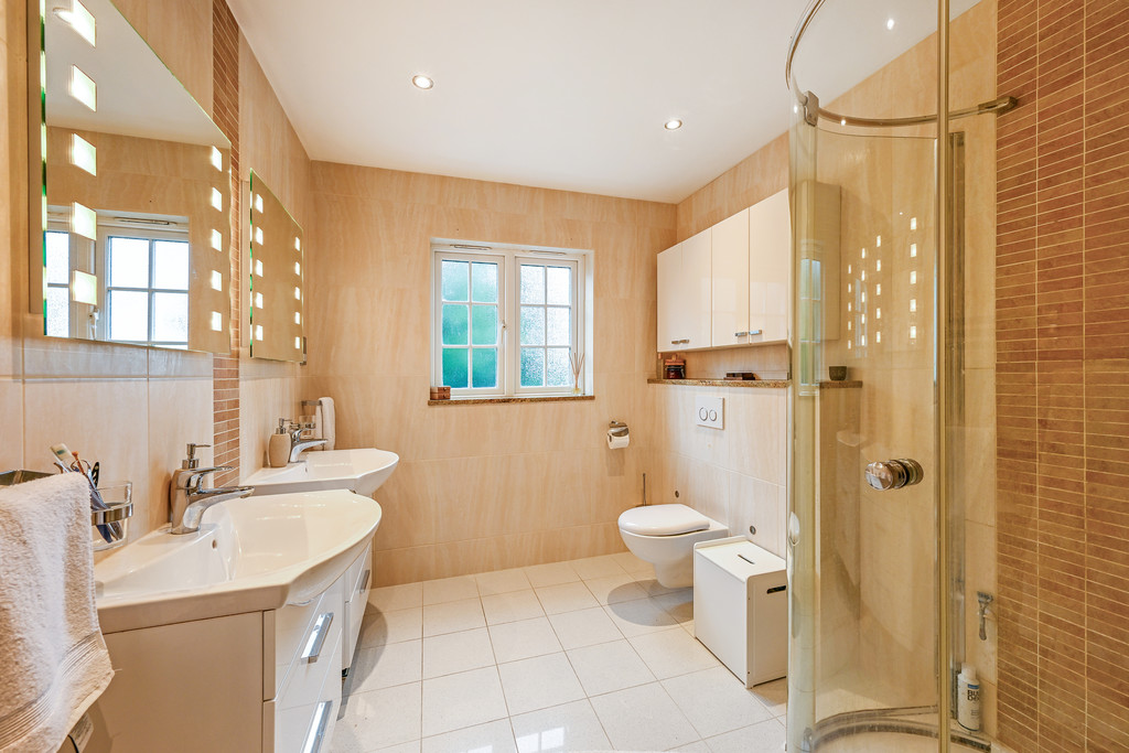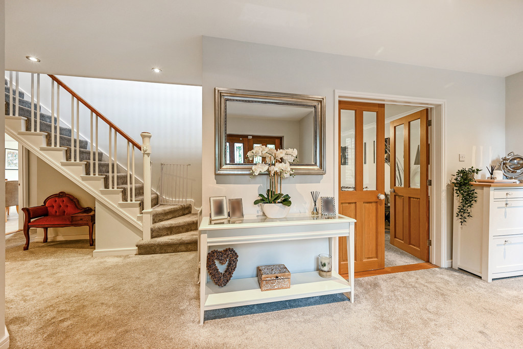 Upstairs you will find the five double bedrooms, with the three largest rooms all having En-Suites. There is a family bathroom for the remaining bedrooms and the main bedroom has a walk through dressing room.