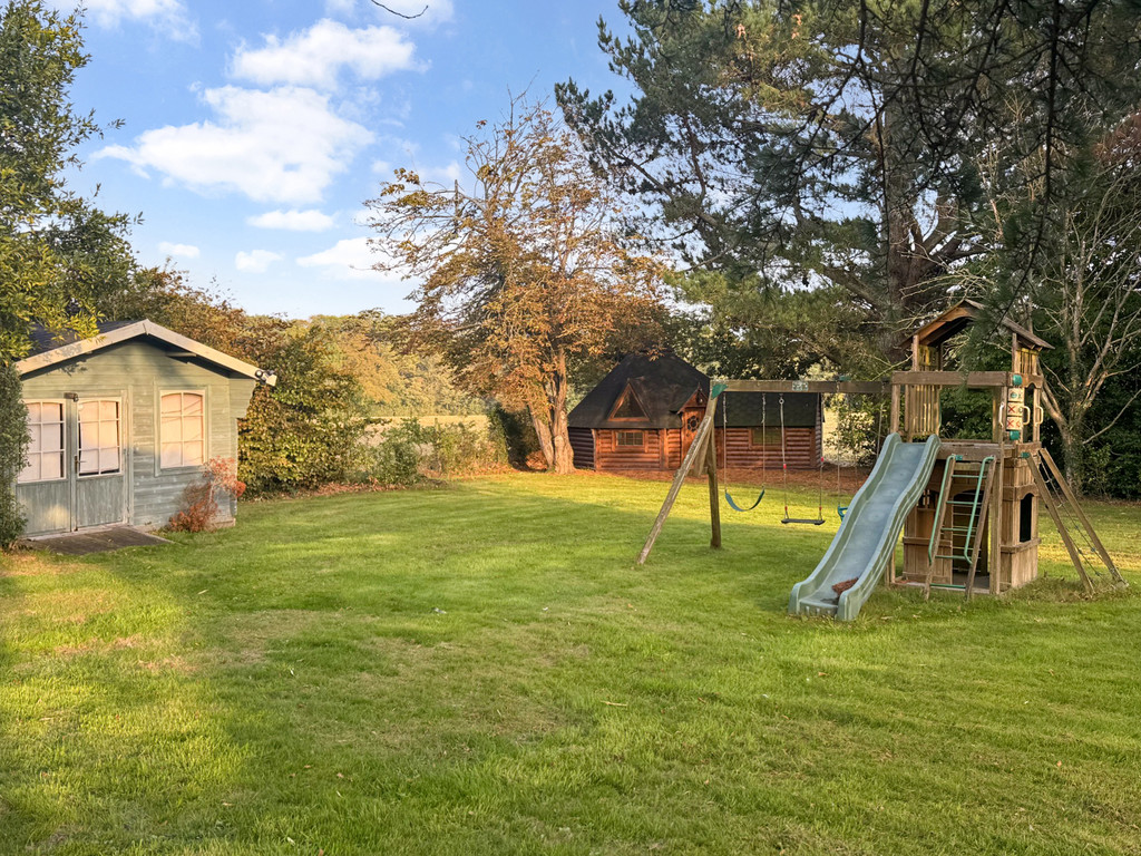 Outside is the garage and car port, the detached barn style workshop, large driveway, detached cabin and summerhouse all set within circa one acre.