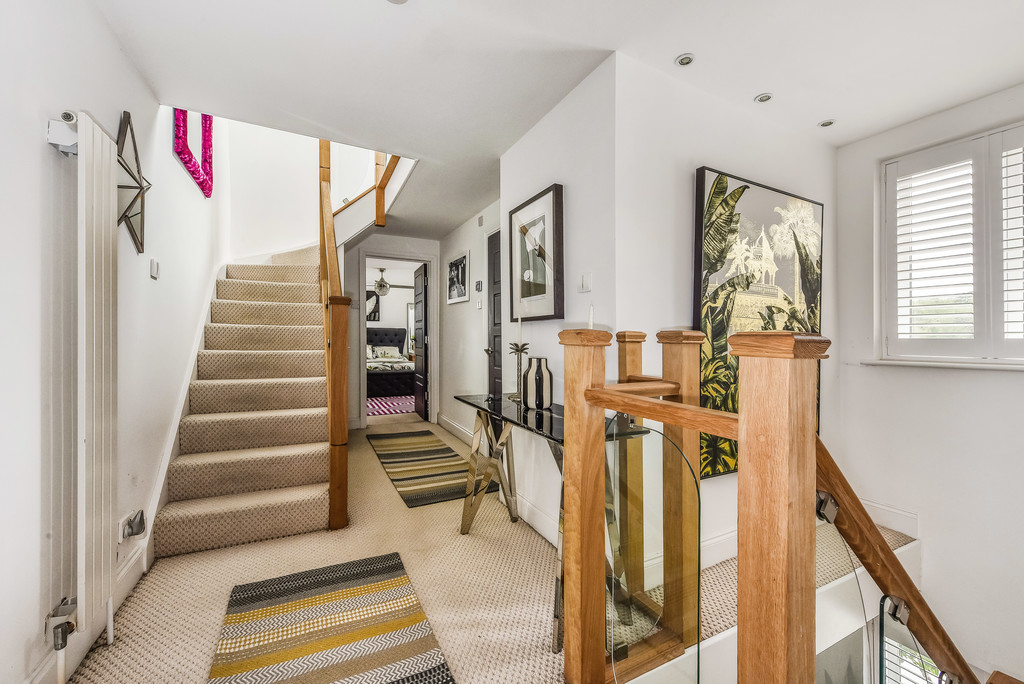 The entrance hall is light and airy with access to the cloakroom and stairs leading up to the bedrooms.